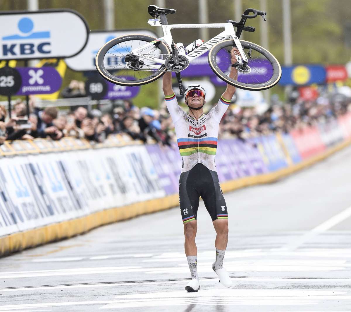 ROMA (ITALPRESS) – Uno straordinario Mathieu Van der Poel vince il Giro delle Fiandre 2024 e completa il tris personale alla Ronde dopo le vittorie del 2020 e del 2022. Il campione del mondo ha salutato tutti a 45 km dall’arrivo sul muro del Koppenberg, incrementando piano piano il suo vantaggio sugli inseguitori fino ad alzare le braccia al cielo per la terza volta sul traguardo di Oudenaarde, questa volta indossando la maglia iridata. Il fuoriclasse olandese ha rispettato dunque i pronostici, che lo vedevano ampiamente favorito in virtù dell’assenza forzata di Wout Van Aert dopo la caduta di mercoledì alla Dwars door Vlaanderen. Sul podio, però, sale un fantastico Luca Mozzato, protagonista di una prova maiuscola che vale un secondo posto inaspettato quanto meritato: il 26enne veneto del team Arkea-B&B Hotels è il primo degli umani. La corsa è stata animata da una fuga di otto elementi, che non riescono però mai ad avvantaggiarsi oltre i 4′. Il gruppo tiene i fuggitivi sempre a portata, e a 110 km dal traguardo prima Jorgenson e poi Pedersen cercano l’attacco per isolare Van der Poel, che rimane sornione nel gruppo. Dopo aver provato a fare la differenza senza successo, sul Koppenberg l’olandese ci riprova e questa volta fa il vuoto: è impressionante la pedalata del campione del mondo nel tratto più duro sul pavè fangoso in salita. Van der Poel rilancia l’andatura nuovamente sul Taaienberg e raggiunge il minuto di vantaggio su Jorgenson, mentre dietro Alberto Bettiol (EF Education-EasyPost) guida il gruppo degli inseguitori, che in breve si riporta sul californiano della Visma. Bettiol e Teuns staccano gli altri e rimangono da soli alle spalle di Van der Poel, ma l’olandese della Alpecin si invola verso la vittoria della seconda classica monumento stagionale, e al traguardo di Oudenaarde alza la bicicletta al cielo. “Vincere il Giro delle Fiandre con la maglia iridata di campione del mondo sulle spalle è un sogno che si avvera – ha spiegato il campione olandese – E’ stata una delle corse più difficili della mia vita”. Alle sue spalle Bettiol e Teuns vengono ripresi, ma l’azzurro Mozzato vince lo sprint a ranghi ristretti ed è raggiante a caldo ai microfoni di Rai Sport: “Per crederci e per realizzare penso ci vorrà un pò di tempo. Sono felicissimo, penso sia la mia miglior prestazione di sempre. Sono riuscito a cogliere questo podio – ha concluso – Sicuramente me lo godrò”. Terza piazza per il tedesco Nils Politt (Uae Team Emirates), nono Bettiol.
